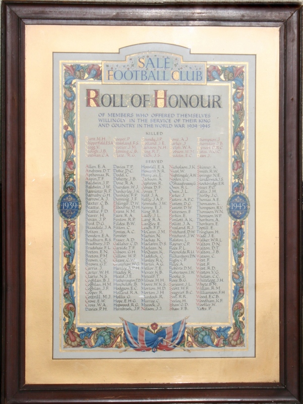 This Memorial was also removed when the new clubhouse was built and is now in storage. It is not known whether Sale F.C. intend to display it again. |