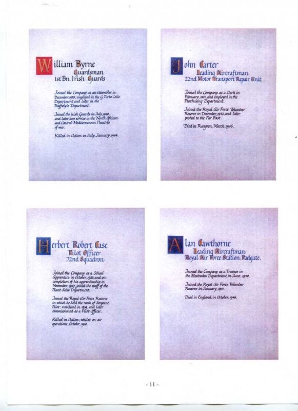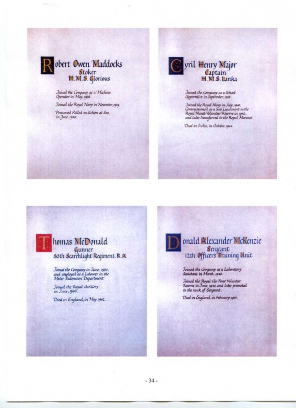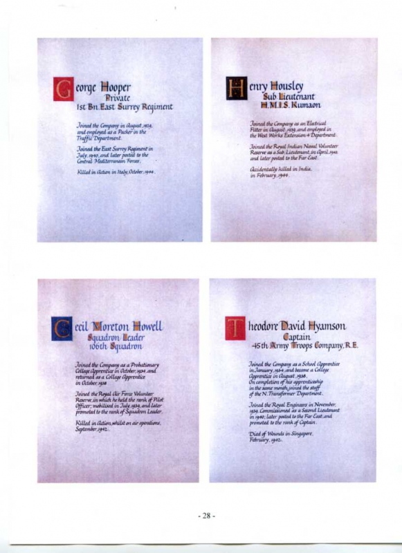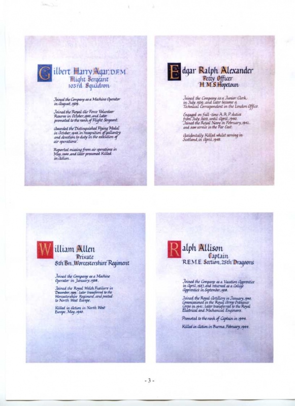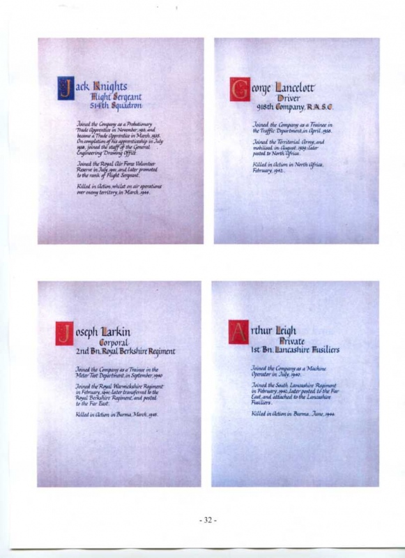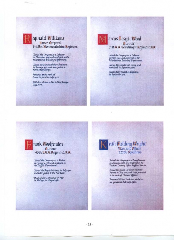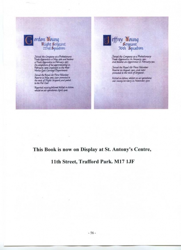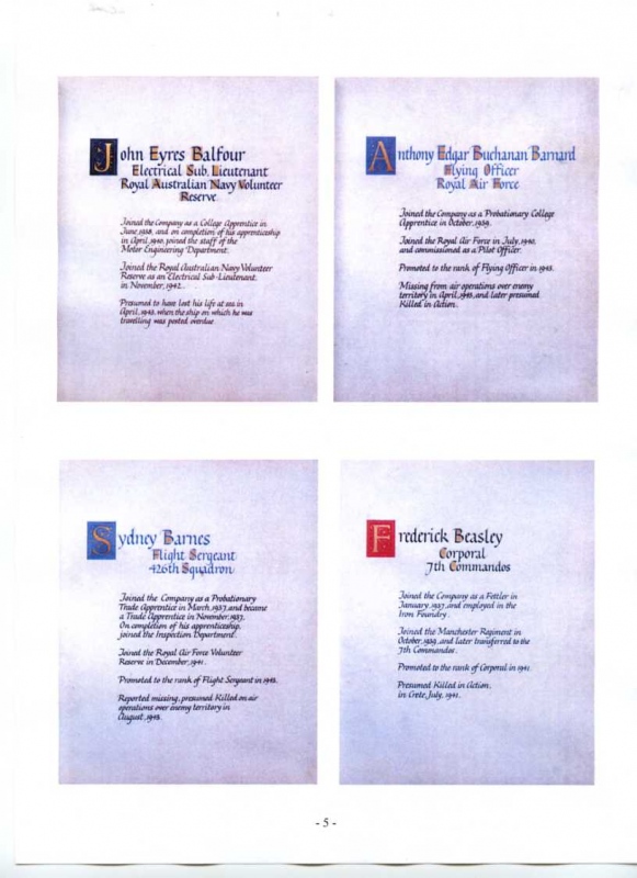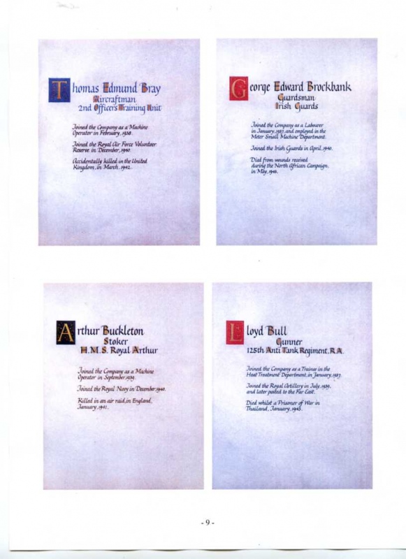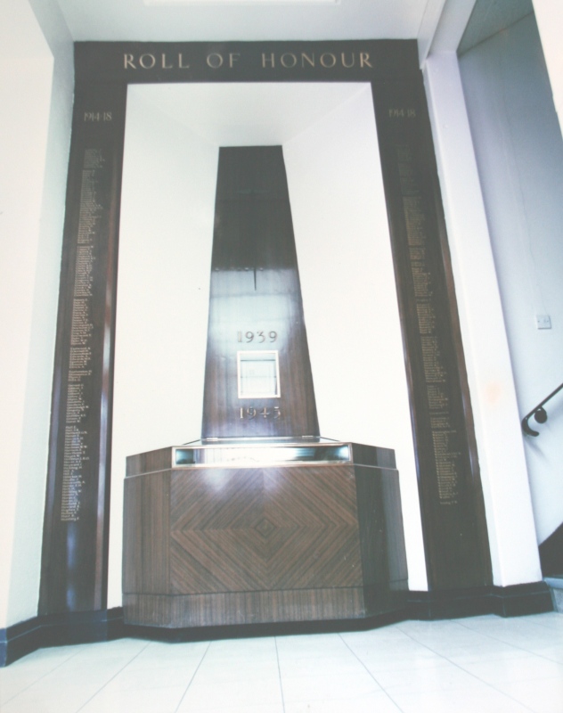 See the photograph of how the WW2 Memorial was housed in an hardwood glazed and illuminated display cabinet between the two WW1 Columns in an alcove in the main entrance to Metro-Vics offices on Westinghouse Road - now demolished. See the other modern photograph showing how the Memorials are now displayed in the St. Antony Centre. |