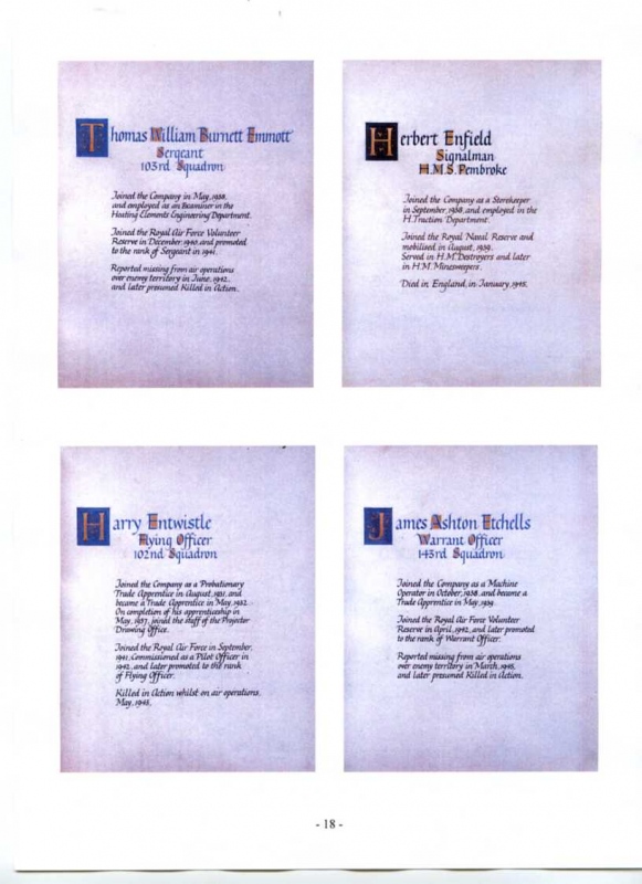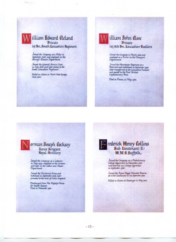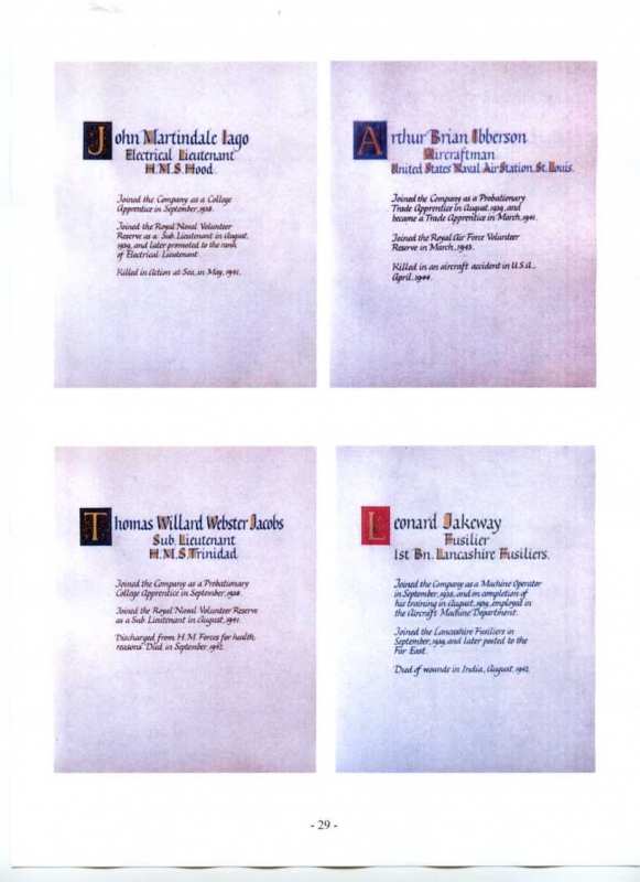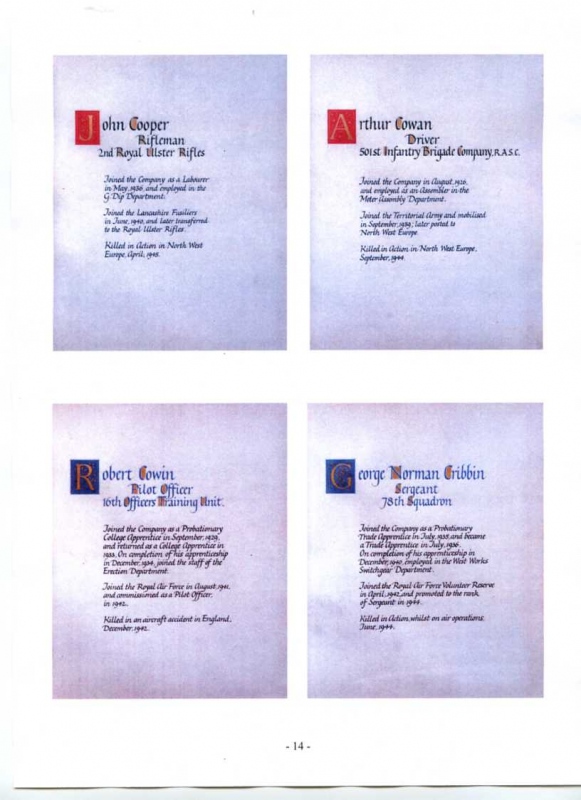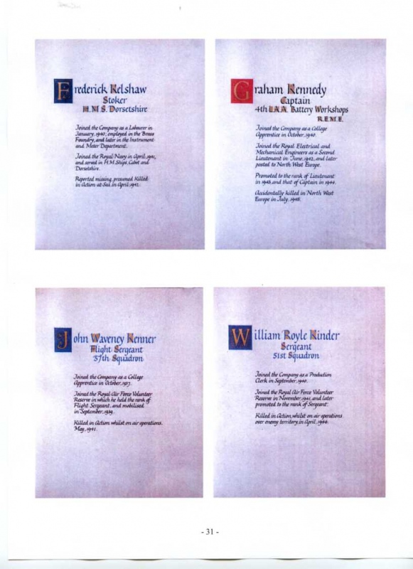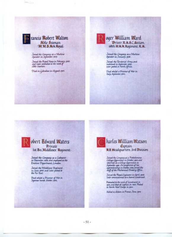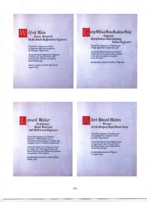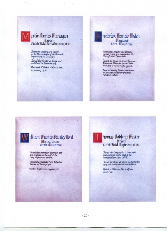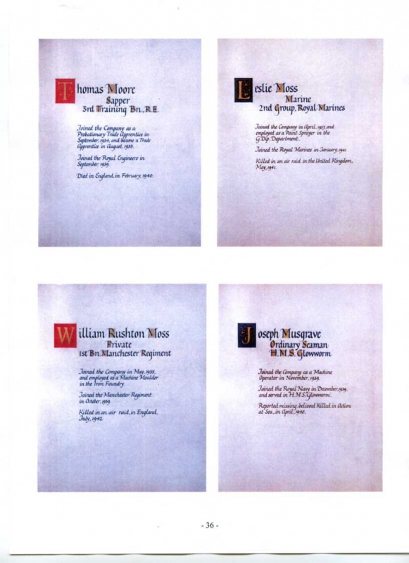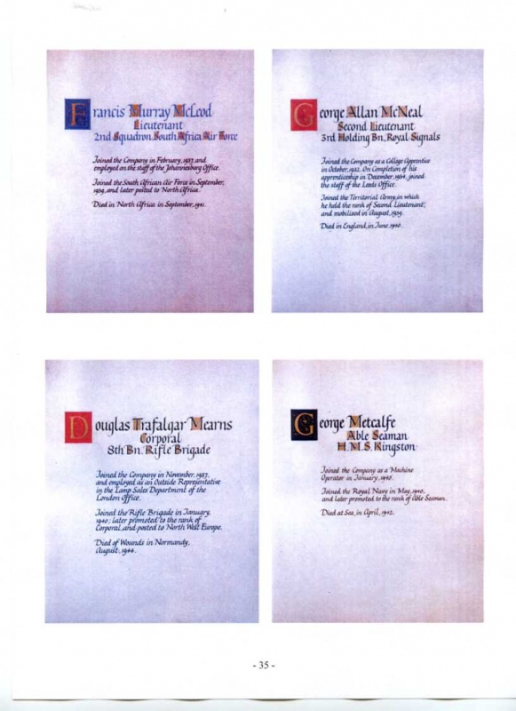 See the photograph of how the WW2 Memorial was housed in an hardwood glazed and illuminated display cabinet between the two WW1 Columns in an alcove in the main entrance to Metro-Vics offices on Westinghouse Road - now demolished. See the other modern photograph showing how the Memorials are now displayed in the St. Antony Centre. |