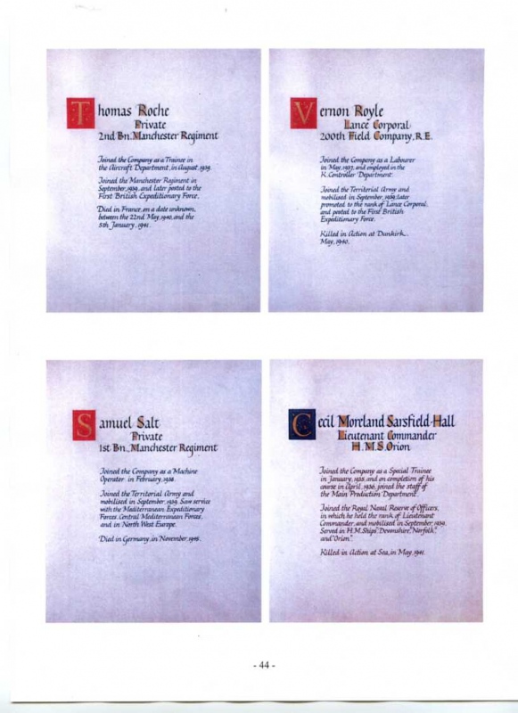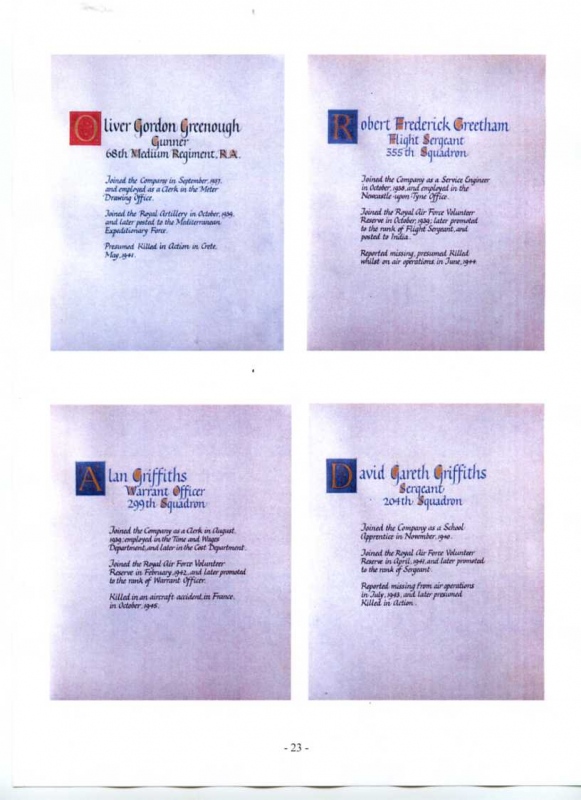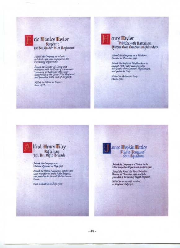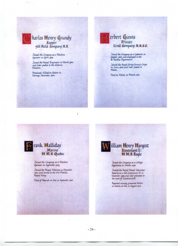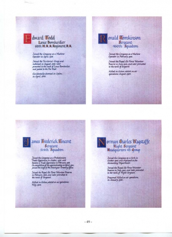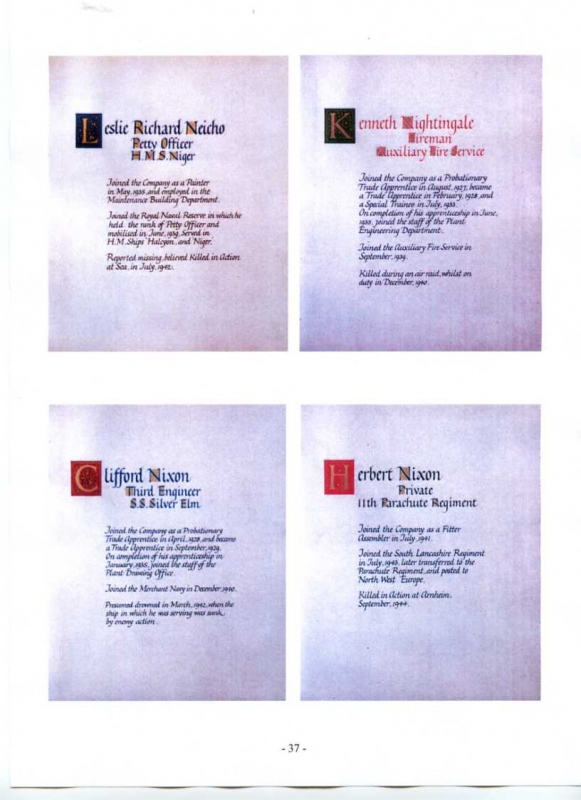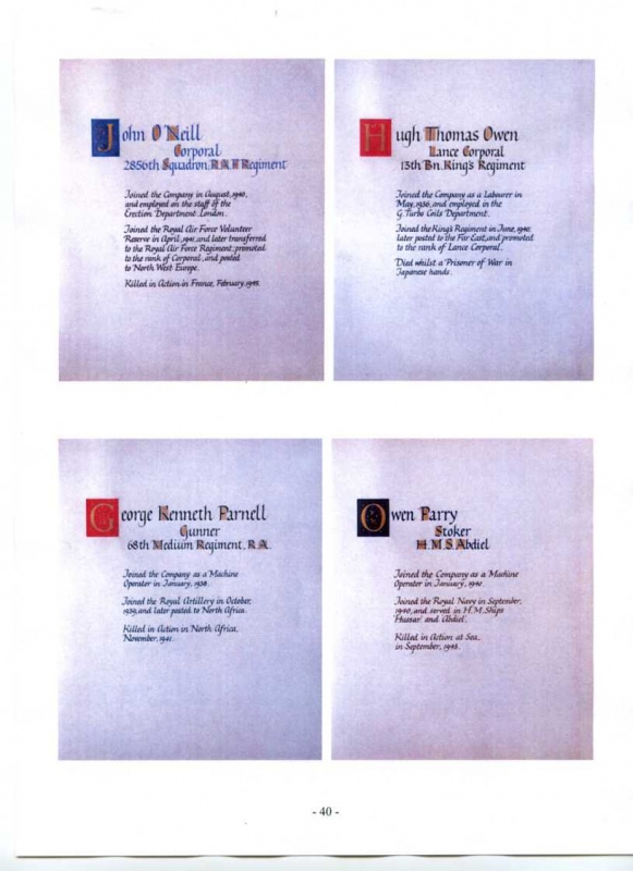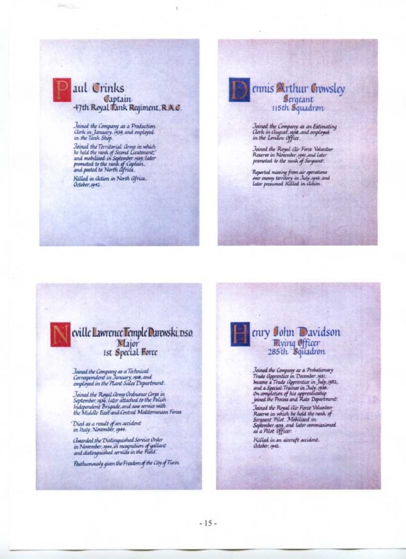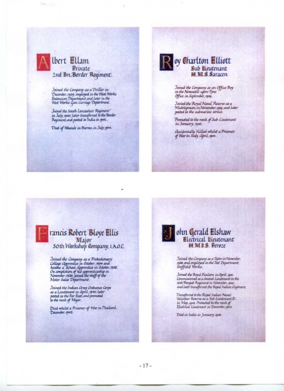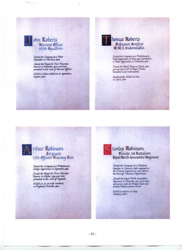 See the photograph of how the WW2 Memorial was housed in an hardwood glazed and illuminated display cabinet between the two WW1 Columns in an alcove in the main entrance to Metro-Vics offices on Westinghouse Road - now demolished. See the other modern photograph showing how the Memorials are now displayed in the St. Antony Centre. |