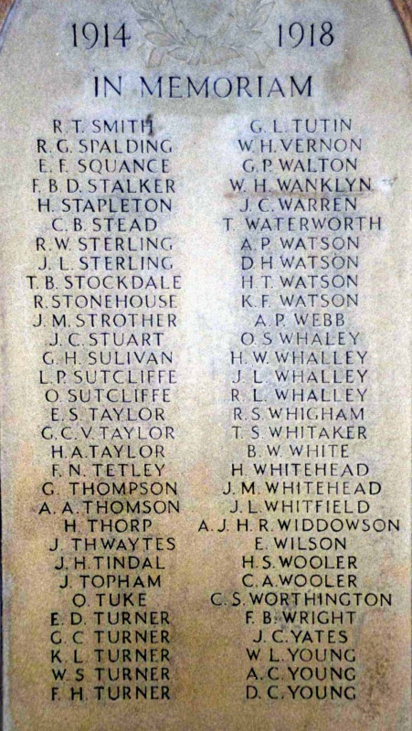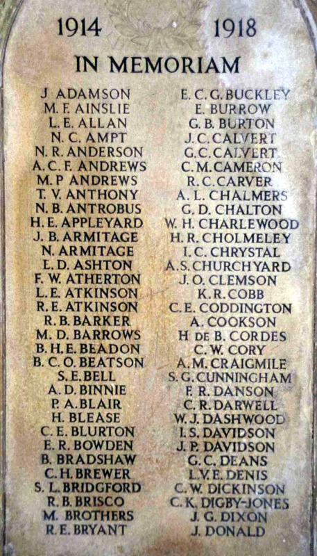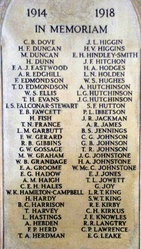 A total of 13 Trafford men who attended Sedbergh School are commemorated on this memorial. |