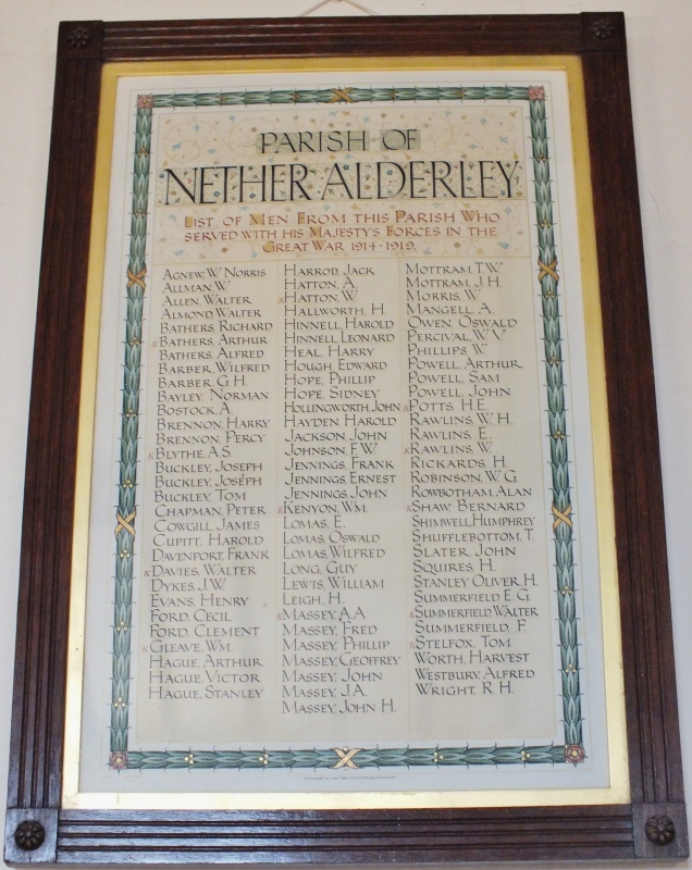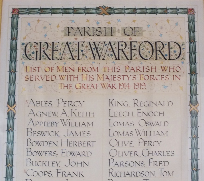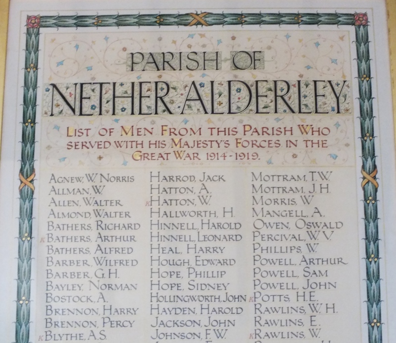 There are two Rolls of Honour. One for Nether Alderley, the other for Great Warford |