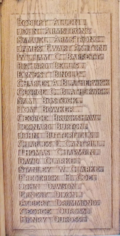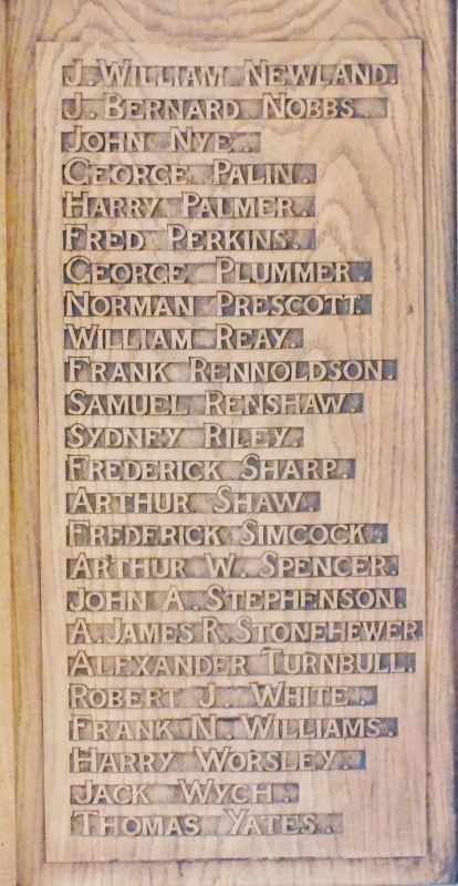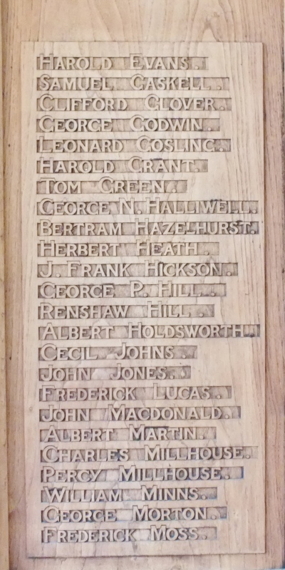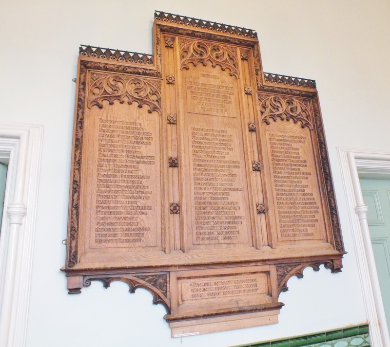 After St. Peter's Church was demolished in 2000, the memorial was adopted by the Stretford Ex-Servicemen's Club, Old Trafford until it closed in 2015 and the memorial was abandoned. A new home has now been found for this memorial. With the blessing of the "Friends of Stretford Civic Hall", Trafford MBC has erected it on the first floor landing of the Civic Hall, overlooking the main staircase, where it now has pride of place. |