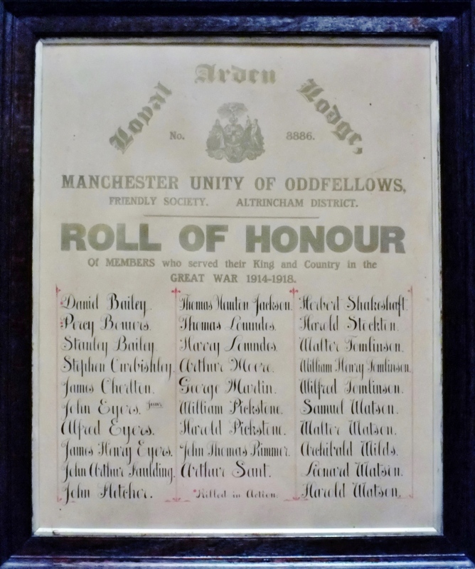 On the Wall in Altrincham Town Hall | Oddfellows Roll of Honour | ||