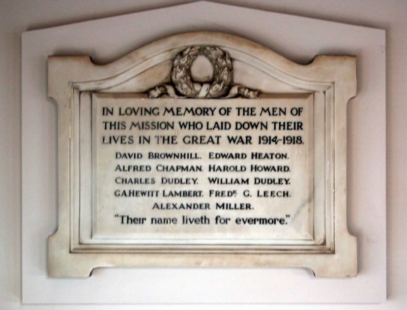 This memorial is actually a Sale Congregational Church Memorial and not a Sale Evangelical Memorial. Sale Congregational Church on Montague Road founded a Mission in Roebuck Lane in 1898 and the building completed in 1905. It closed in 1938 and was sold to the Sale Evangelical Church. Which accounts for the fact that the names on this memorial are the same as those listed on the Sale U.R.C. Sunday School Memorial. It is believed that Roebuck Lane must have originally returned 90ยบ and took the line of what is now Kelsall Street, joining up with Springfield Road, then a cul-de-sac. In 1968, the Sale Congregational Church amalgamated with the Sale Presbyterian Church to become the Sale United Reformed Church. Church. The Sale Evangelical Church was demolished in 2018 and the War Memorial was moved to St. Paul's P.C. just along the road, where it is proudly displayed along with their own War Memorial. |