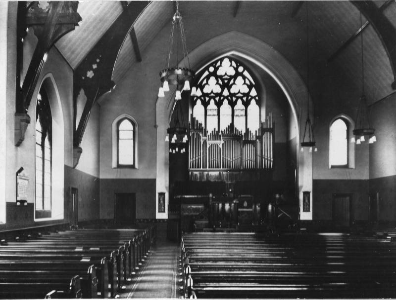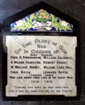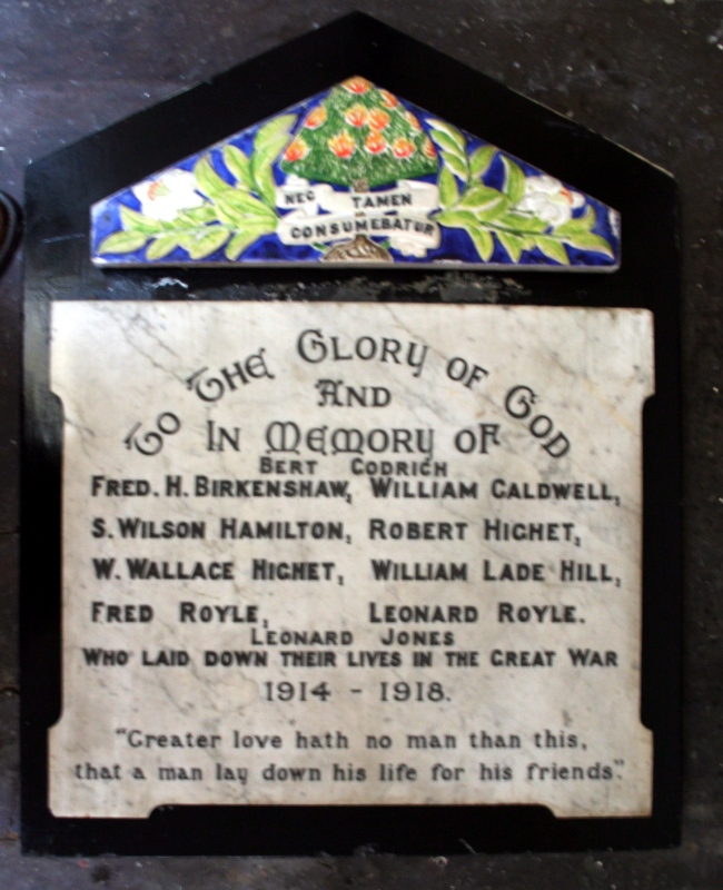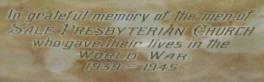 In 1968, the Sale Presbyterian Church on Northenden Road closed and was demolished. The remaining congregation amalgamated with the Sale Congregational Church to become the Sale United Reformed Church, where this memorial ended up in a store room. In 2020 St. Paul's P.C. accepted responsibility for it and had it renovated. It is now proudly displayed in that Church. The embroidered memorial copy was undertaken by Lesley Tarnowski one of the Royle family descendants. It is now the only war memorial on display in the Sale URC Church. Church interior image courtesy of Michael Riley. |
