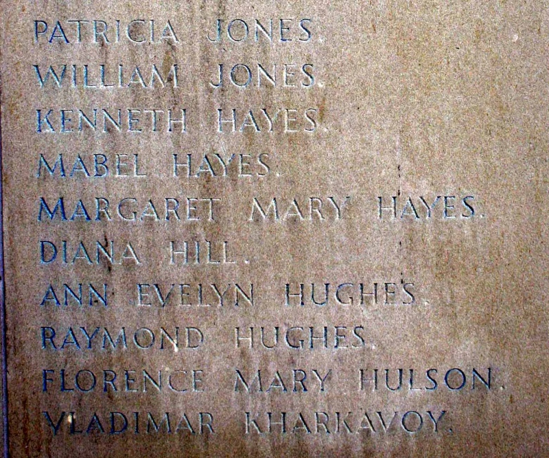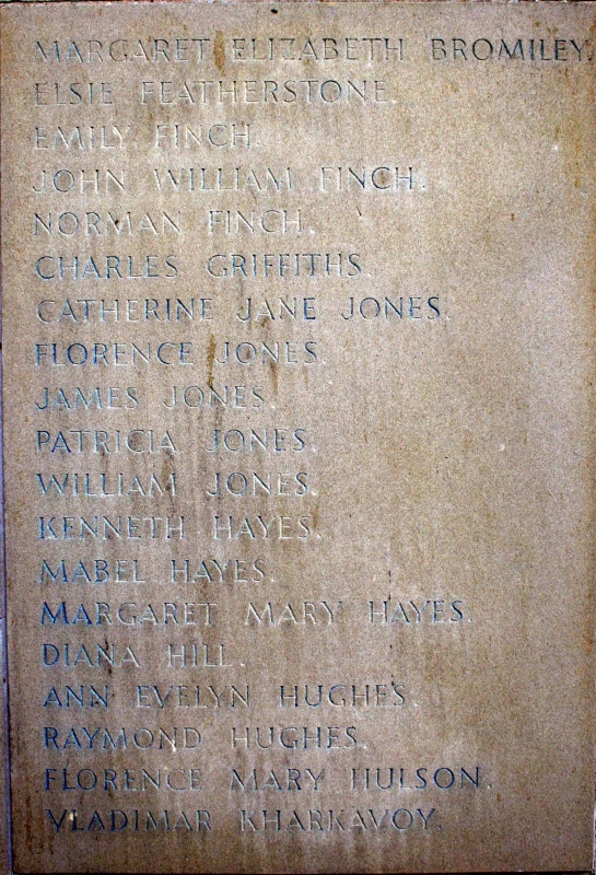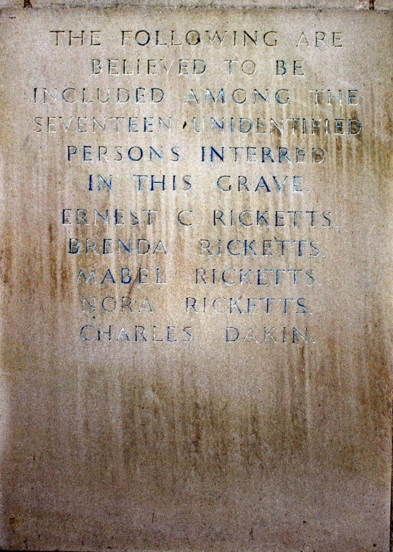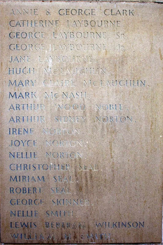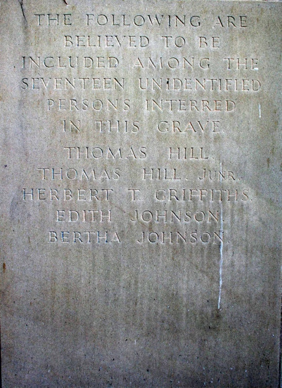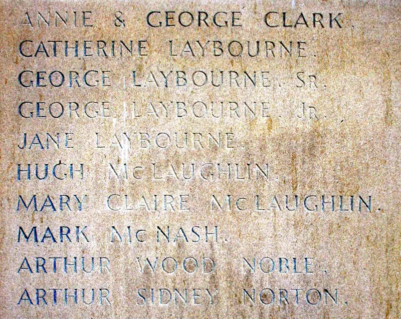 The Memorial lists 40 names plus 10 who are believed to be amongst the list of 17 unidentified persons. |
