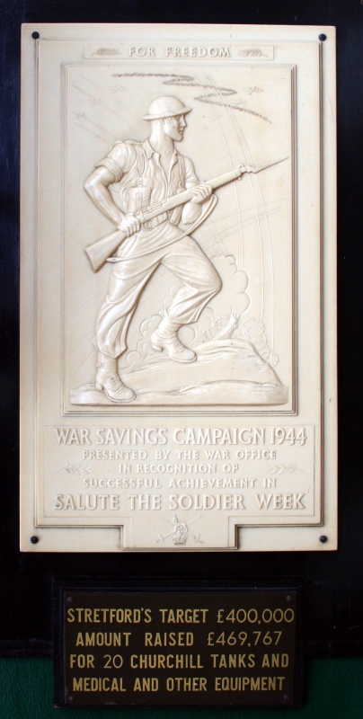 There were five War Savings Weeks held during WW2. 1. Spitfire Fund 1940. 2. War Weapons Week 1941. 3. Warship Week 1942. 4. Wings for Victory Week 1943. 5. Salute the Soldier Week 1944. Only the 1943 and 1944 Savings Weeks had Ivorine Plaques. See also the Wings for Victory 1943 Plaque. |