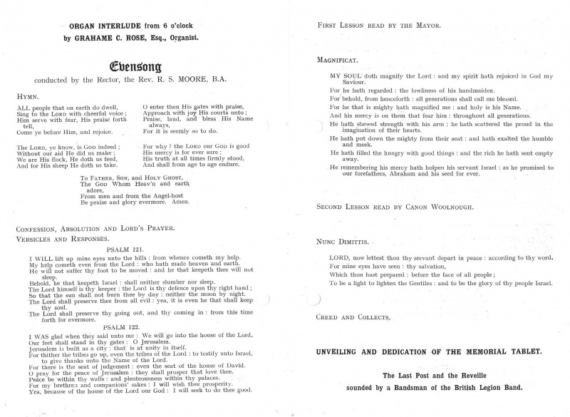 Unveiling Front & Back | Unveiling Inside Pages | Malcolm Shenton Memorial Cross | |